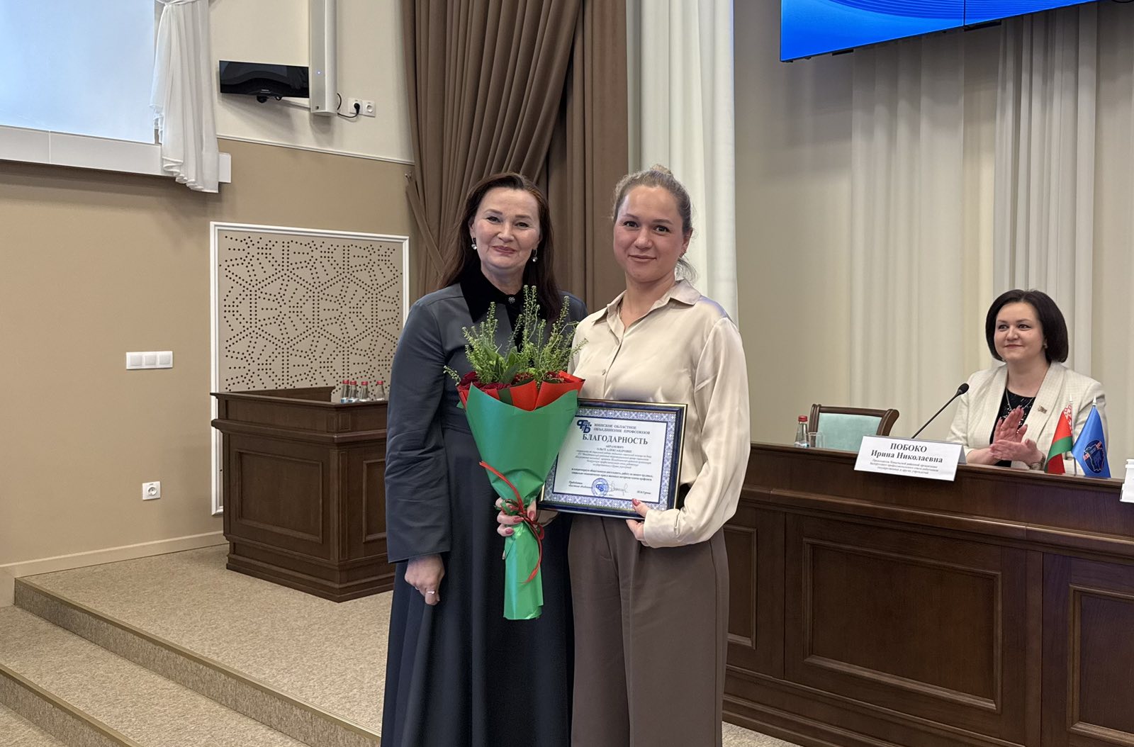 Татьяна Владимировна вручила Благодарности Минского областного объединения профсоюзов за плодотворную общественную деятельность.