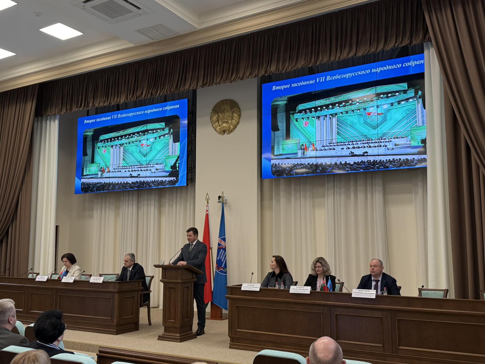 С докладом о проделанной работе в 2025 году, достигнутых показателях и результатах, а также направлениях для дальнейшего развития и задачах на будущее выступил председатель Минской областной организации Профсоюза работников госучреждений Владимир Филимонов.