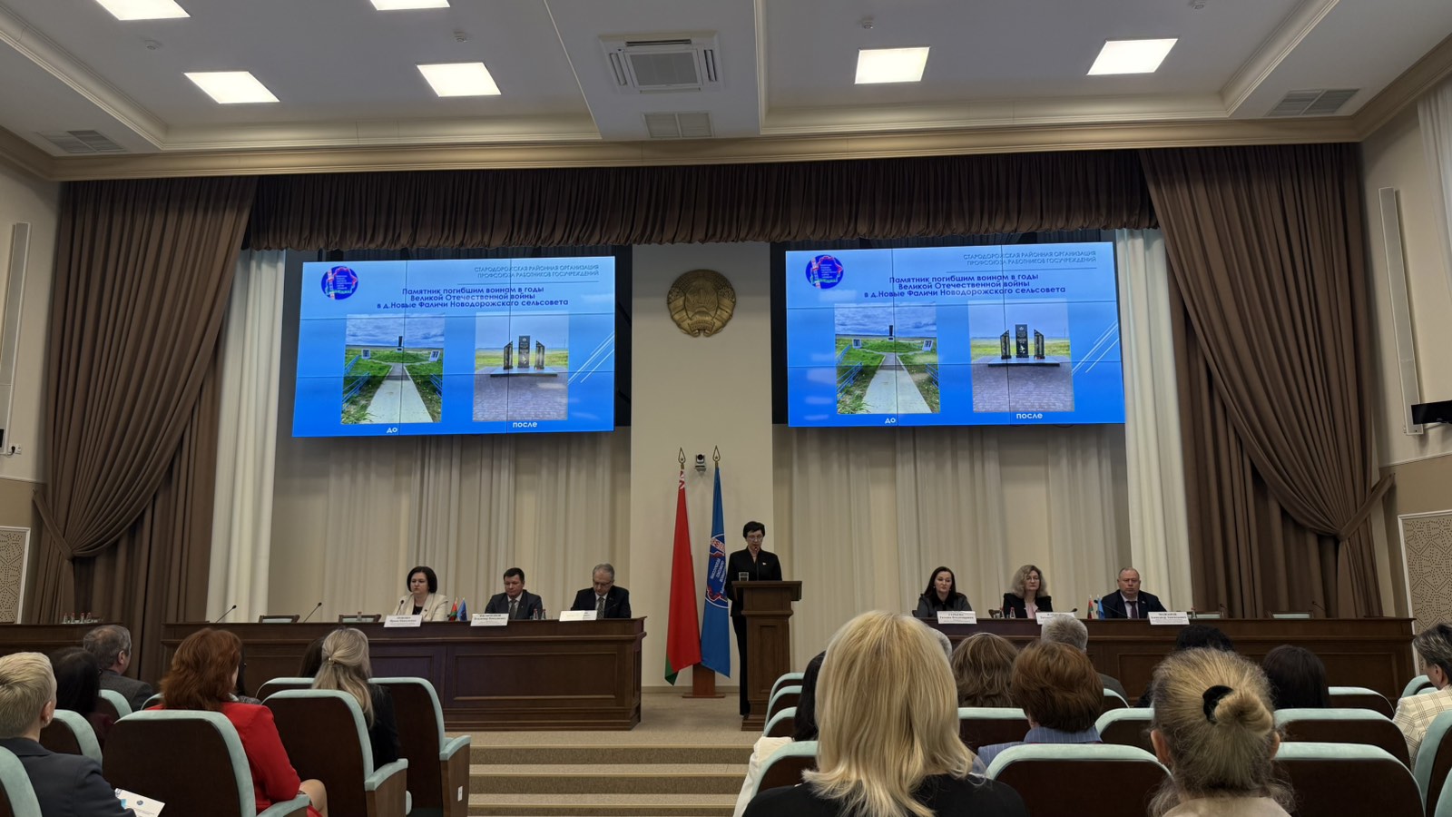 О том, как выстроена работа по нравственно-патриотическому воспитанию молодежи и сохранению исторической памяти в Стародорожском районе отметила в своем выступлении председатель районной организации Ольга Пархимович, а председатель первичной профсоюзной организации государственного учреждения «Санаторий «Юность» Управления делами Президента Республики Беларусь Белорусского профессионального союза работников государственных и других учреждений Елена Мороз в своем докладе остановилась на важном аспекте профсоюзной работы — выполнении норм коллективного договора и реализации его на практике.