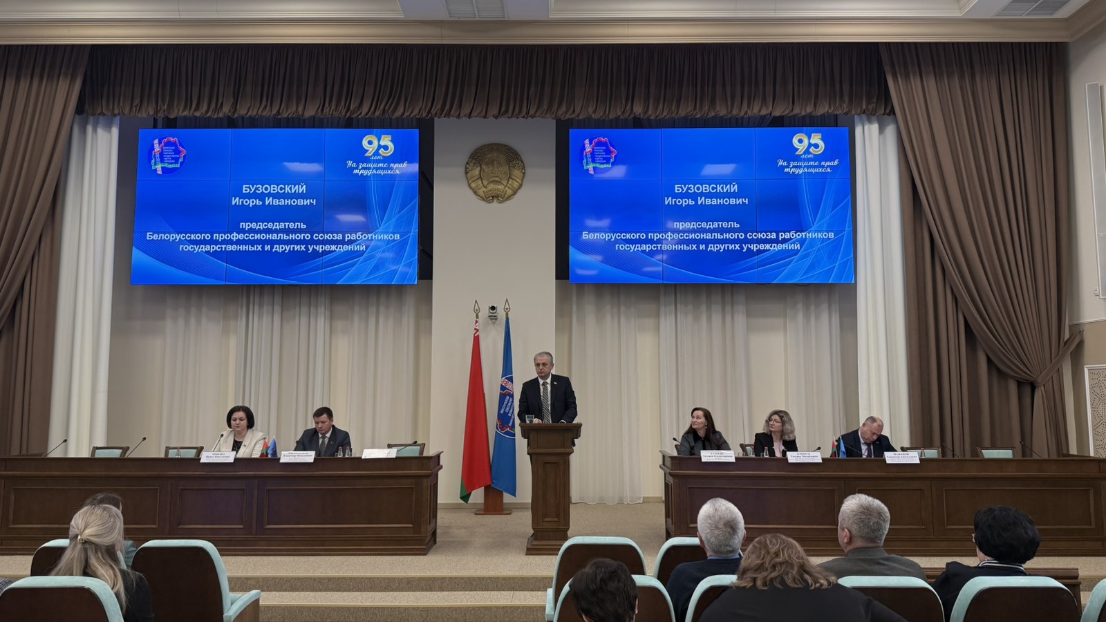 Председатель Республиканского комитета Белорусского профессионального союза работников государственных и других учреждений Игорь Бузовский в своем выступлении отметил, что на достигнутых показателях не стоит останавливаться, необходимо увеличивать и преумножать. достигнутые результаты. Профсоюзная деятельность – это люди и защита их социально-экономических гарантий, поэтому важно слышать и слушать каждого, учитывать их интересы.