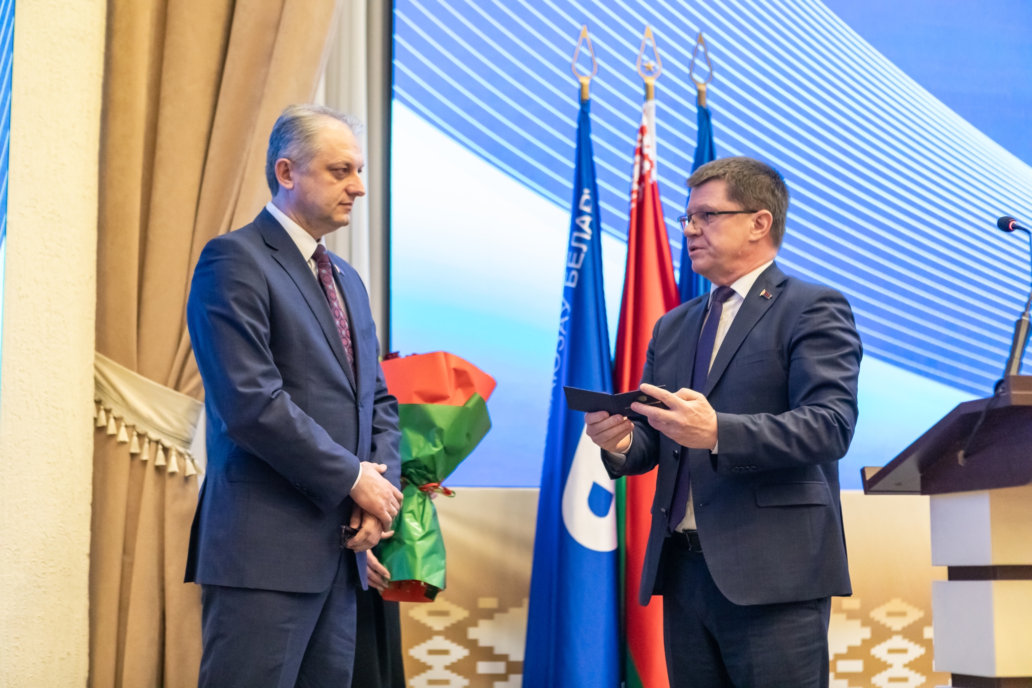 Председатель ФПБ поблагодарил Сергея Потапенко, который возглавлял профсоюз госучреждений на протяжении последних лет, за личный вклад в укрепление авторитета профсоюза госучреждений и проделанную работу на благо профсоюзного движения.