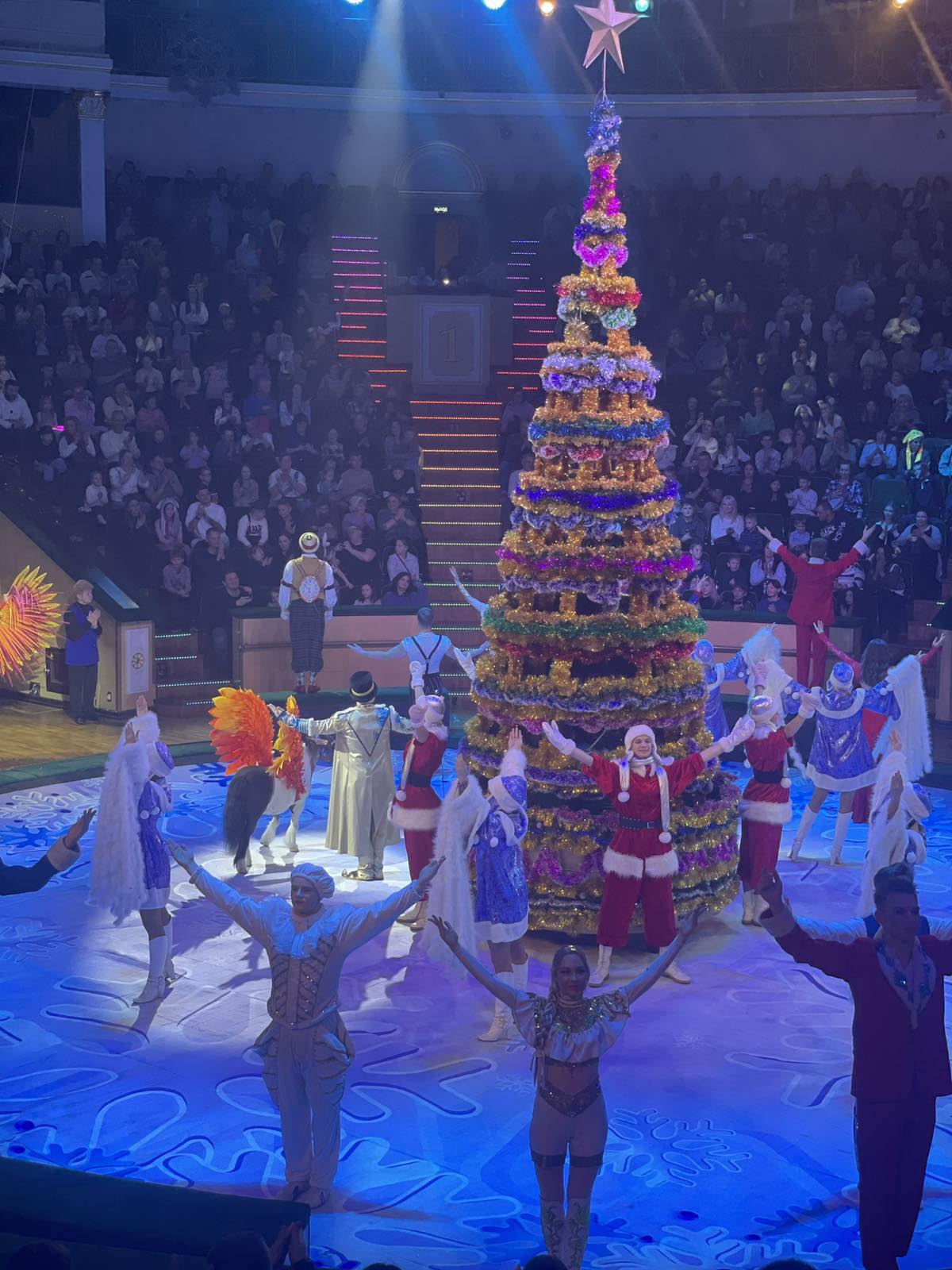 В самом сердце манежа развернулась зимняя сказка: Жар-птица, ослепительная и своенравная, похищает время, чтобы Новый год не наступил. Но на помощь спешат необычные герои – Календарь и Будильник. Вместе они отправляются в захватывающее путешествие, чтобы спасти праздник и вернуть радость людям!