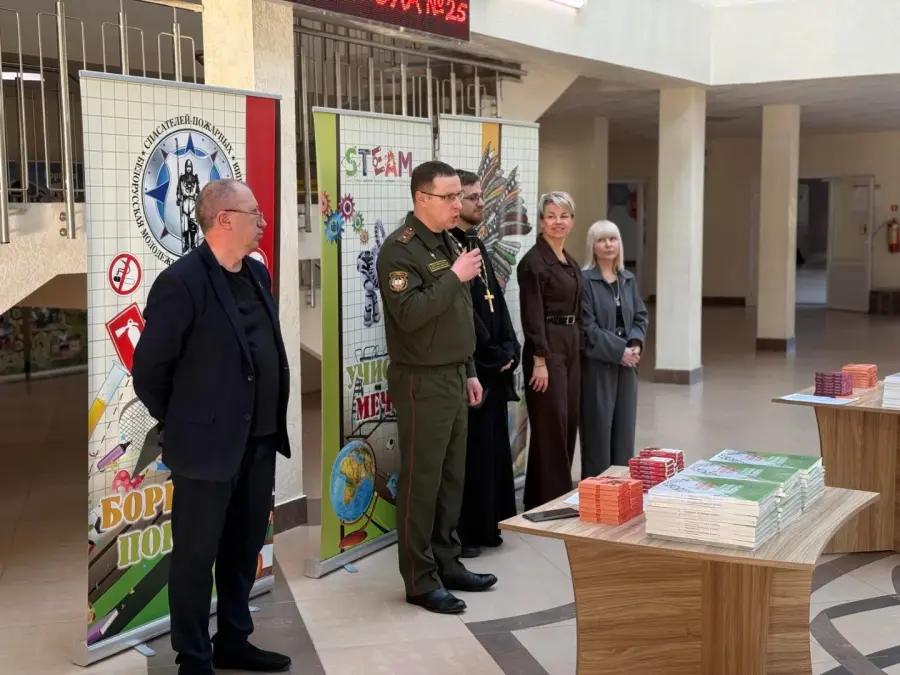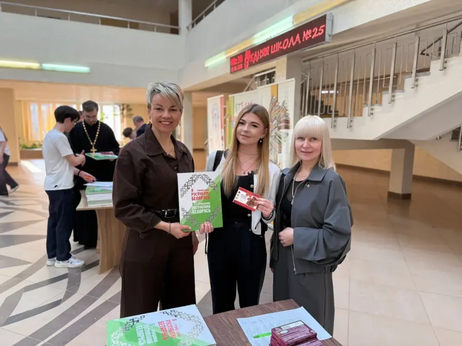 В преддверии Дня Конституции Республики Беларусь в средней школе №25 г. Борисова прошли праздничные мероприятия: акция «Я – гражданин Республики Беларусь» и диалоговая площадка «Быть гражданином Республики Беларусь» с участием председателя Борисовской районной организации Белорусского профессионального союза работников государственных и других учреждений Натальи Сильченко, заместителя командира войсковой части 22319 по идеологической работе майора Евгения Губского, руководителя отдела религиозного образования и катехизации Борисовской епархии иерея Вадима Свириденко.